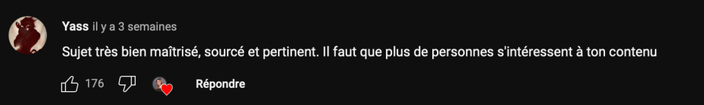 Je pourrais allonger cette liste à volonté. Mais travaillons avec ces quelques éléments et voyons comment notre Youtubeuse se situe par rapport à un ou deux de ces points.