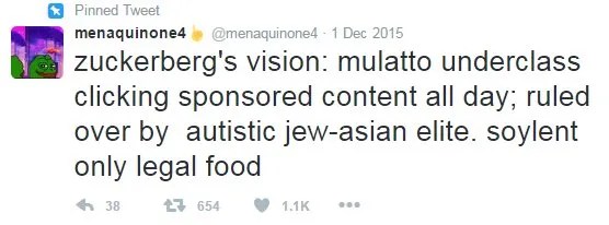 Cette élite mixte, unie uniquement par un « QI élevé » et par ses positions professionnelles, serait armée de pouvoirs autoritaires pour « limiter les dysfonctionnements des Noirs » – ce qui, ajouté à un code de conduite en langage fleuri sans effusion de sang, serait la seule chose qui l’unirait. Il y a des choses pires que cela, mais pas beaucoup. Quiconque a travaillé dans une société asiatique pour un patron asiatique a des histoires à raconter, des histoires de douleur et de morosité… au Japon, malgré le sentiment de camaraderie que les étrangers supposent chez les Japonais, avoir un patron japonais est une chose très difficile dans la vie ; c’est difficile même pour un expatrié au Japon qui est respecté en tant qu’expert européen et quelque peu exempté des codes de comportement inhabituels du Japon. Un tweet célèbre du légendaire poète Menaquinone4 a capturé cette dystopie naissante : « La vision de Zuckerberg : une classe inférieure mulâtre qui clique toute la journée sur des contenus sponsorisés ; gouvernée par une élite judéo-asiatique autiste ; le soja comme le seul aliment légal ».